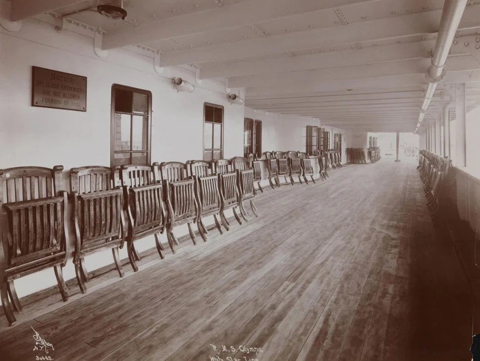 A photograph of Olympics 2nd-class B-Deck promenade as it looked in 1911